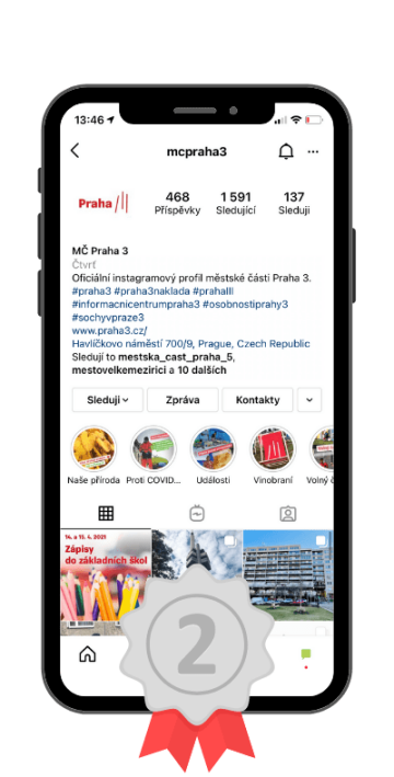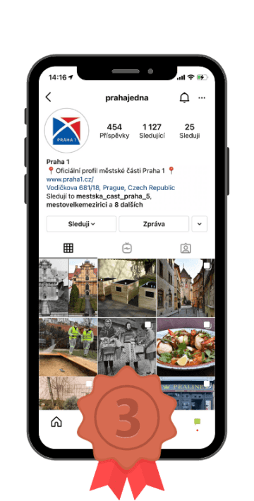 Jste Pražan a máte účet na Instagramu? Pak s velkou pravděpodobností můžete sledovat počínání na této sociální síti i radnice vaší městské části. Svou stránku tam má totiž téměř každá. V rámci soutěže Zlatý lajk 2021 jsme prozkoumali účty radnic nad 10 tisíc obyvatel. Dohromady jich bylo 16 a skutečně každý měl něco do sebe. Výběr tří nejlepších nebyl snadný. Nejlepším pražským Instagramem je podle našich kritérií magistrátní @cityofprague, následovaný Prahou 3 a Prahou 1.