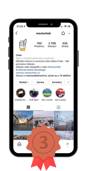 Profilovému snímku by více slušelo, kdyby na něm byly pouze "kreslené domečky", tedy bez česko-německého nápisu Cheb, byl by přehlednější a čistší. Pokud by se podařilo opatřit ikonkami i archiv stories, bylo by to také skvělé.