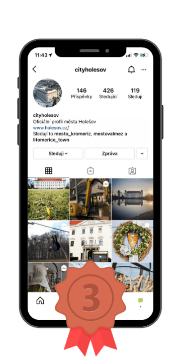 Trojici nejlepších instagramových účtů ve Zlínském kraji uzavírá město Holešov. V kategorii měst nad 10 tisíc obyvatel, kterých je v tomto kraji 9 a 6 z nich je aktivní na Instagramu, je Holešov co do počtu obyvatel nejmenší. Přesto se mu daří držet tempo se statutárními městy.