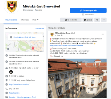 Rekordní rychlost odpovědí. Radnice v Brně-Střed má jeden z nejlepších facebooků