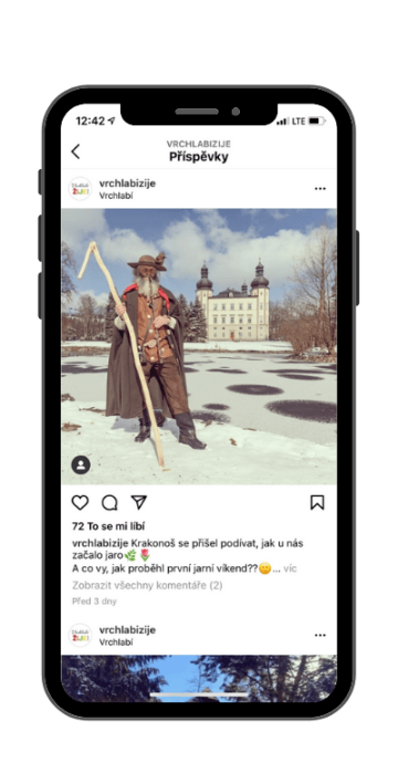 Účet @vrchlabizije je velmi originálně pojatý Instagram. Je výrazně turisticky orientovaný jak ve formátu stories, tak v klasických příspěvcích. Ty nás zaujaly svým zpracováním a úpravou - přesně takový obsah uživatelé Instagramu milují. Stalo by za to být při publikování postů přísný skutečně na úplně každý snímek, některé jsou totiž spíše reportážní momentky a kvalitou za ostatními zaostávají a hodí se spíše do stories.