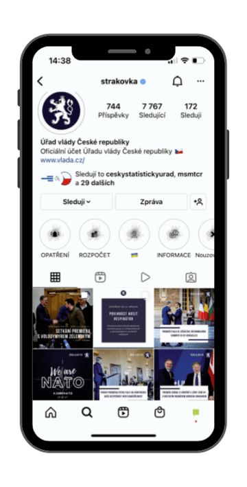 Na Instagramu je @strakovka stále spíše nováček a přiznejme si, na Instagram si Češi zatím příliš nenavykli chodit pro informace z politiky, ale přesto se úřad blíží deseti tisícům odběratelů. Úřad mírně změnil podobu příspěvků ve feedu i ve stories. Grafika je čistější a modernější, na druhou stranu se podařilo feed udržet jednotný a grafickým stylem navazuje na příspěvky z období předchozí vlády. Správce zde reaguje na některé komentáře lajkování, což je určitě správné. Účet má příjemně zpracovaný archiv stories.