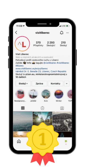 Profilový obrázek je zvolen skvěle. Kvalitní minimalistický design využívá skvělého loga a díky tomu, že nebyl použit celý název "Liberec", ale pouze počáteční písmeno, je profilový obrázek čitelný i v komentářích a ve feedu. Bohužel, což nás mrzí ze všeho nejvíce, není ikonkami obohacen archiv stories, který by s nimi vypadal mnohem lépe.