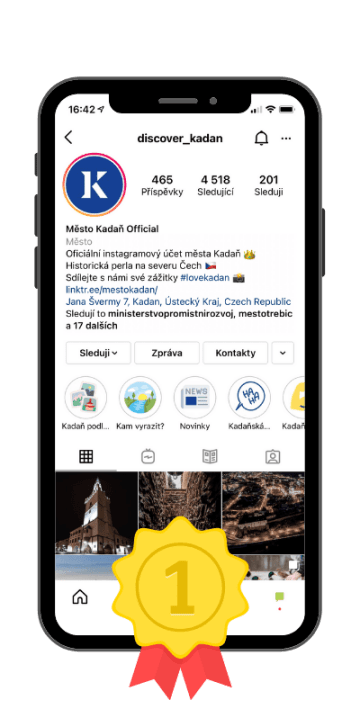 Profil @discover_kadan je na velmi vysoké úrovni po všech směrech a odměnou mu je i zcela nadprůměrný počet sledujících, který je v poměru k počtu obyvatelům města jedním z nejvyšších v celé zemi. Tento účet od nás jako vůbec první v této soutěži dostal plný počet bodů.