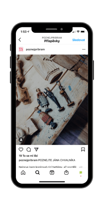 Účet vybízí followery k tomu, aby objevovali Příbram prostřednictvím známých osobností. Věnován je tomu i archiv stories, u nichž každý z výběrů reprezentuje jednu osobnost a místa s ní spojená. Co je ale nejzajímavější, je opravdu dokonalá práce s úpravou fotografií ve stories i v klasickém příspěvku. Veškerý obsah je stylizován absolutně jednotně a v identickém stylu. Díky tomu celý profil působí kompaktně a takřka uměleckým dojmem.